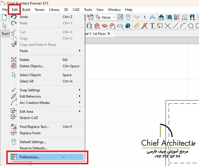 برای رفع این مشکل طبق عکس زیر وارد منو ی Edit شده و گزینه Preferences... را انتخاب کنید